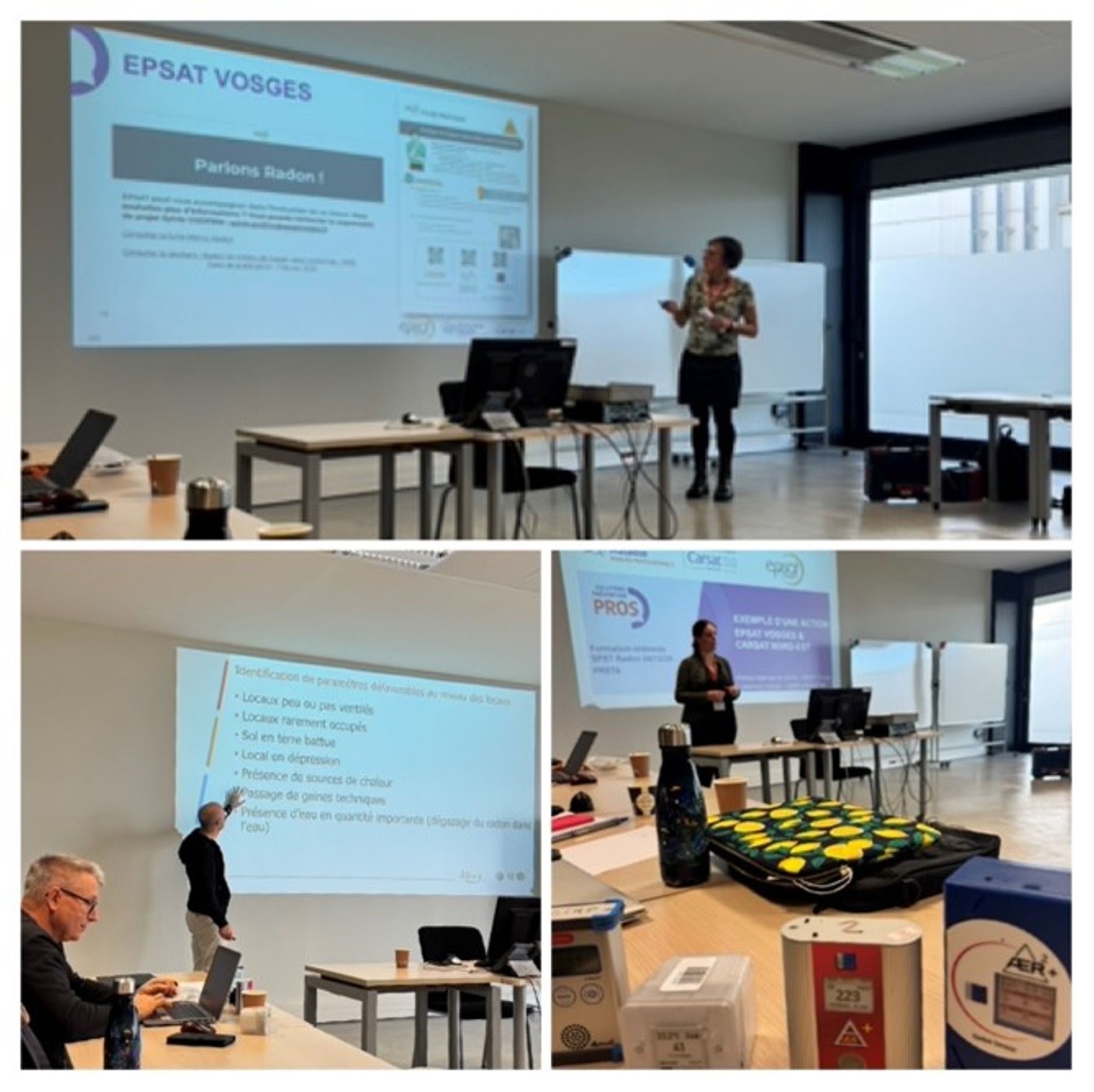 La journée s’est poursuivie avec les interventions d’Émilie DUCHET (CARSAT Nord-Est, CIMPE) et de Sylvie GODFRIN (EPSAT Vosges), qui ont partagé leurs retours d’expérience de terrain. Elles ont présenté la situation du radon dans le Grand Est, les actions d’accompagnement menées auprès des entreprises, les projets expérimentaux avec des TPE volontaires ainsi que les enjeux liés à la structuration encore émergente de la filière des prestataires spécialisés. Leurs témoignages ont illustré la diversité des situations rencontrées et l’importance d’un appui méthodologique solide pour aider les entreprises à évaluer et maîtriser ce risque.