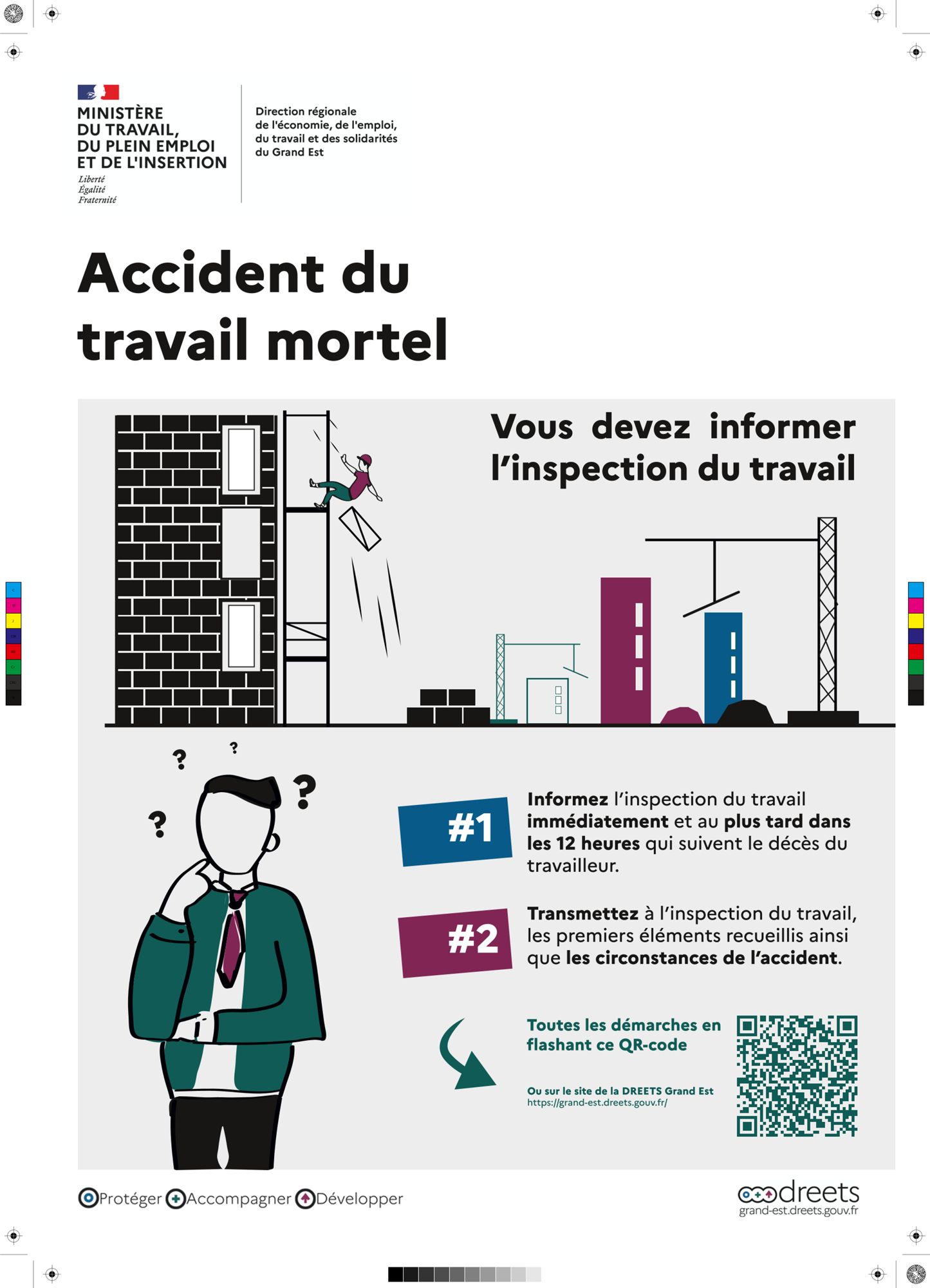 Depuis juin 2023, les employeurs ont l'obligation de déclarer à l'Inpection du travail la survenance d'un accident du travail mortel. Cela ne concerne pas les accidents de trajet (domicile/lieu de travail)