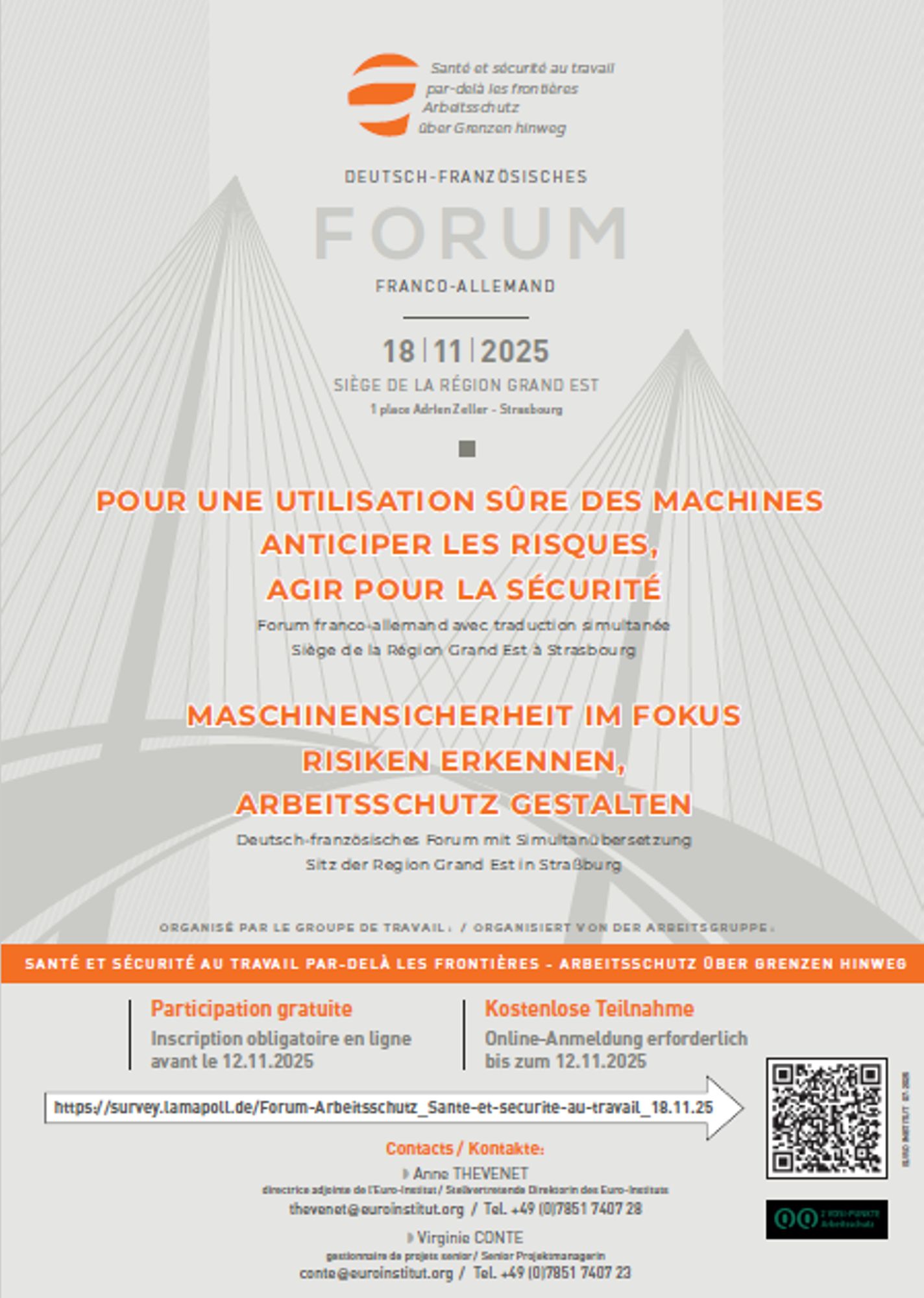 Comme chaque année, le groupe de travail franco-allemand santé et sécurité au travail par-delà les frontières, auquel participe la DREETS Grand Est, organise une manifestation ouverte à toutes et à tous.