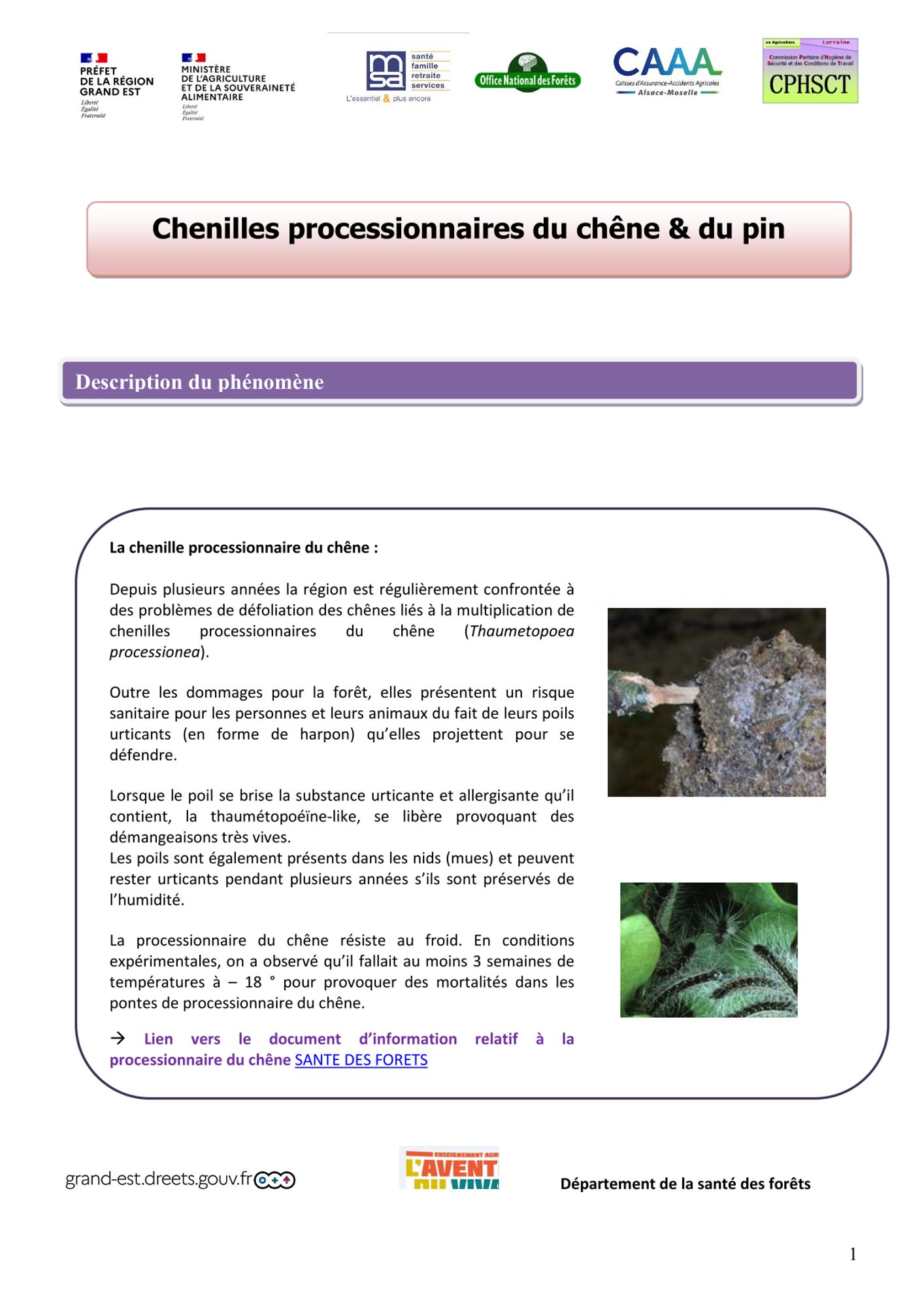 Information et sensibilisation sur le risque lié aux chenilles processionnaires du chêne et du pin