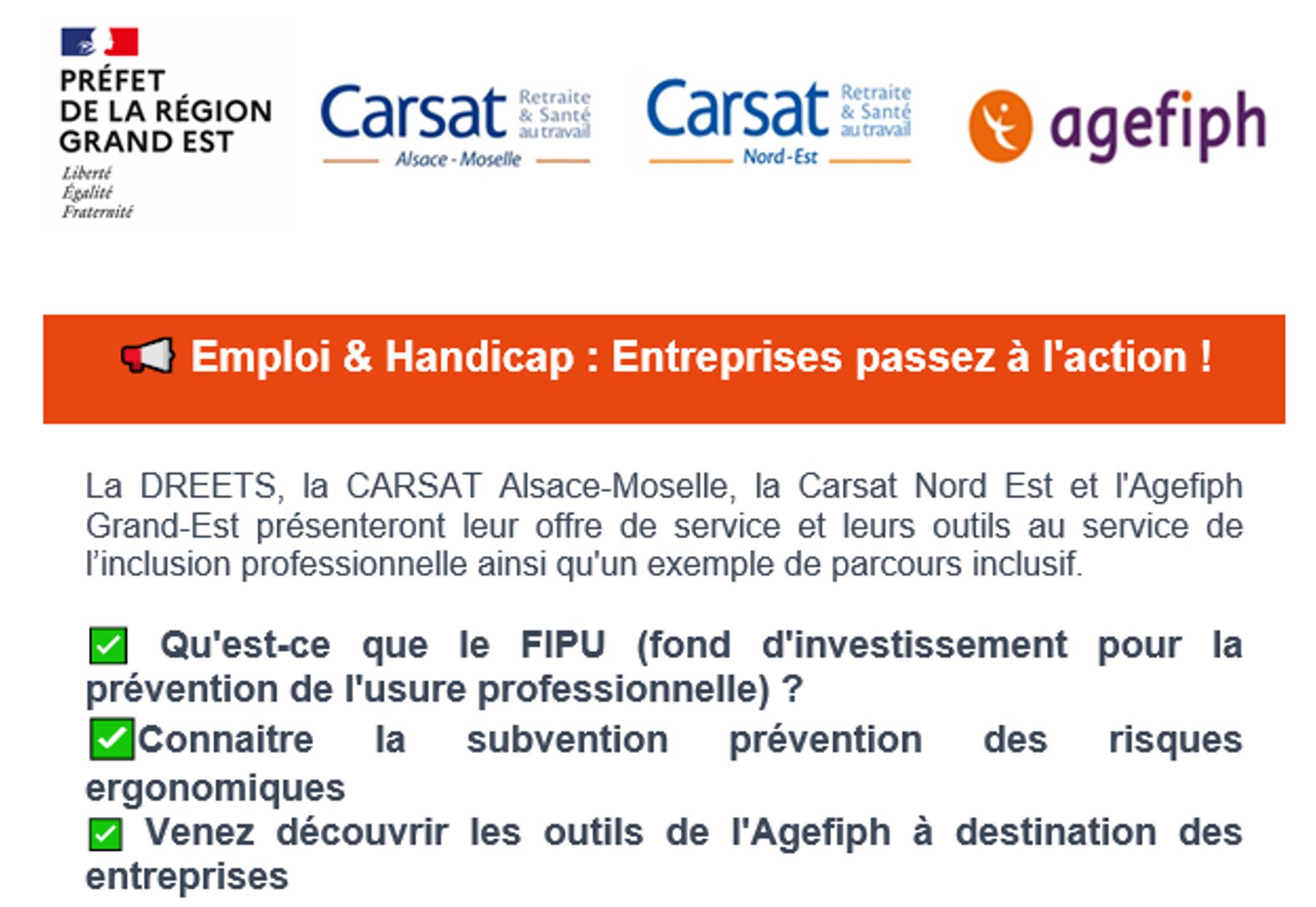 WEBINAIRE « Emploi & Handicap : Entreprises passez à l’action ! » 🕘RDV le lundi 18 novembre de 10h30 à 12h00 Format : Webinaire Lien d'inscription au webinaire