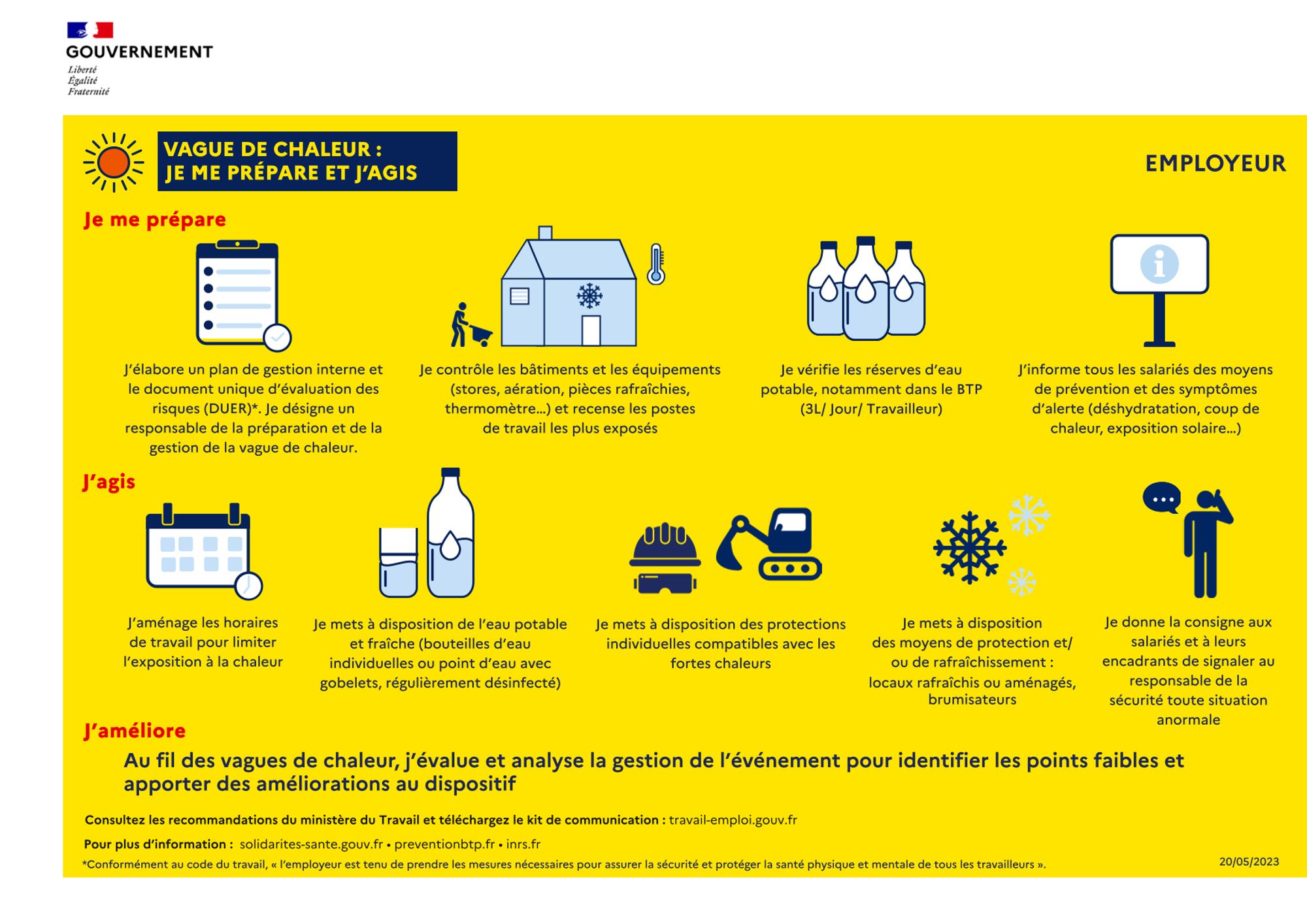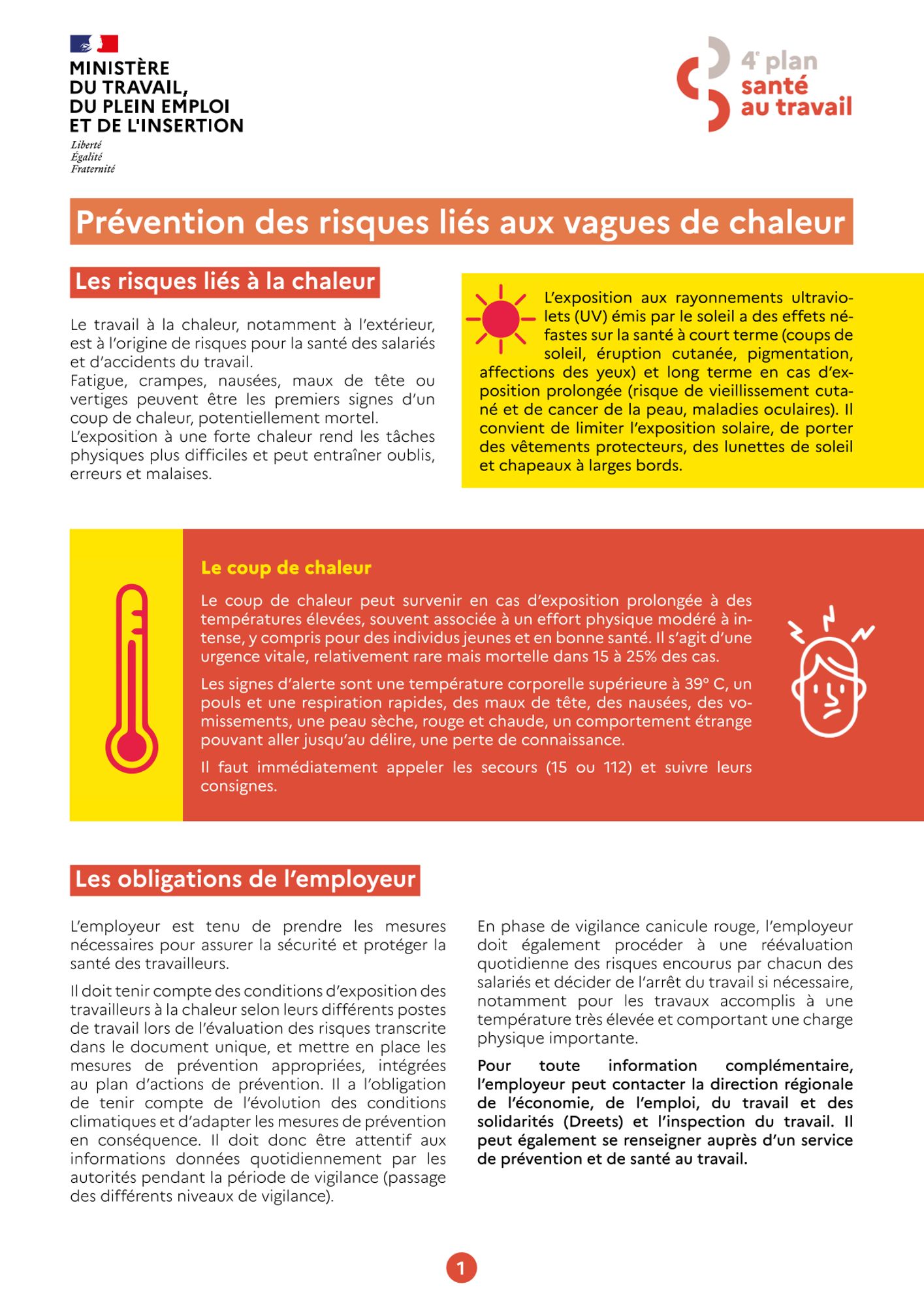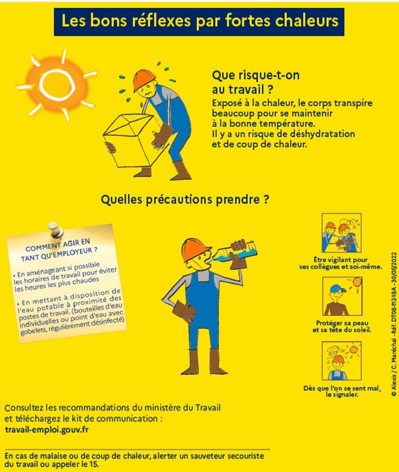 Le travail à la chaleur, notamment à l’extérieur, est à l’origine de risques pour la santé des salariés et d’accidents du travail. Fatigue, crampes, nausées, maux de tête ou vertiges peuvent être les premiers signes d’un coup de chaleur, potentiellement mortel. L’exposition à une forte chaleur rend les tâches physiques plus difficiles et peut entraîner oublis, erreurs et malaises.