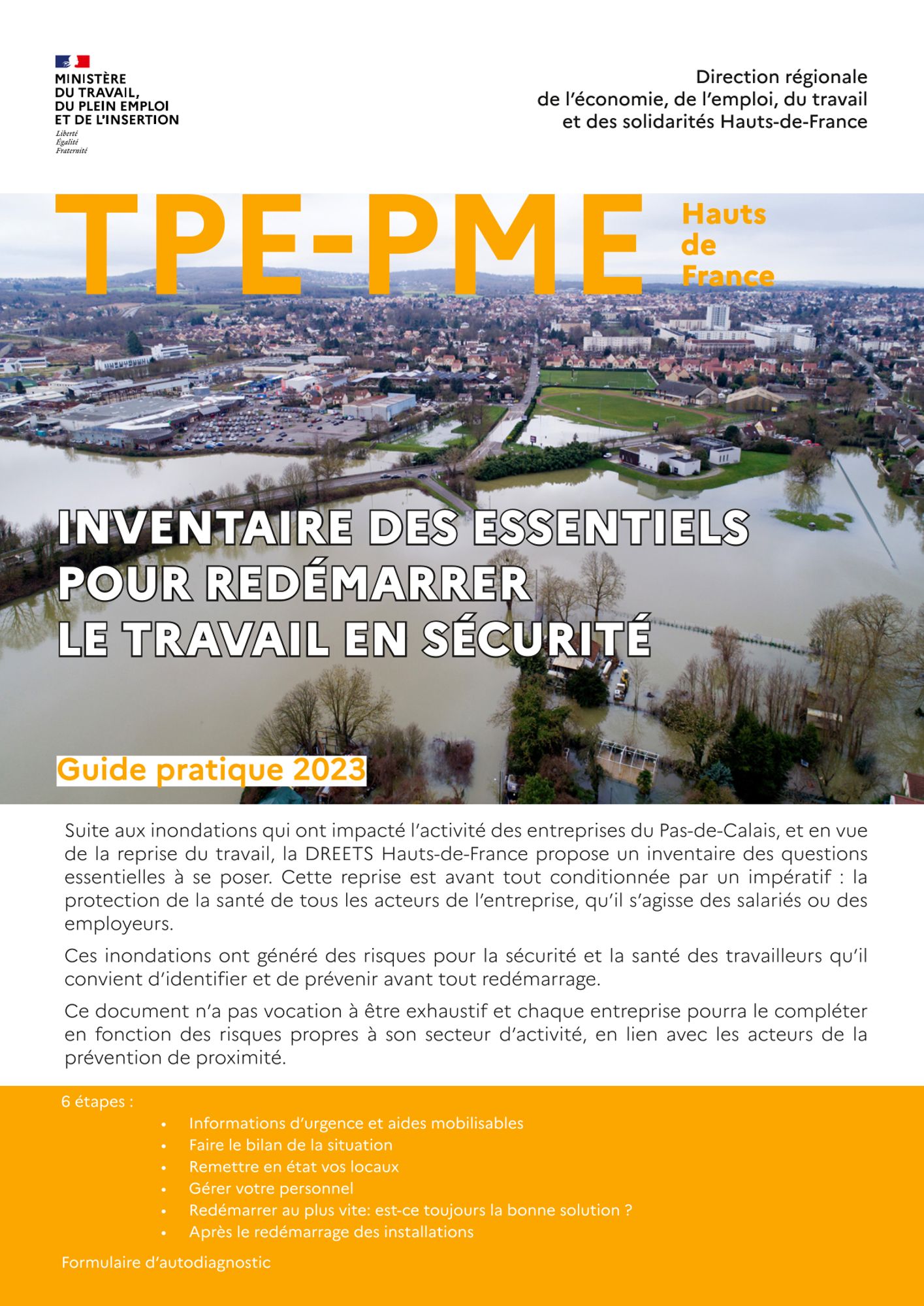 - Un inventaire pour les PME/TPE des questions essentielles à se poser avant la reprise des travaux. En effet, les inondations ont généré des risques pour la sécurité et la santé des travailleurs qu’il convient d’identifier et de prévenir avant tout redémarrage.