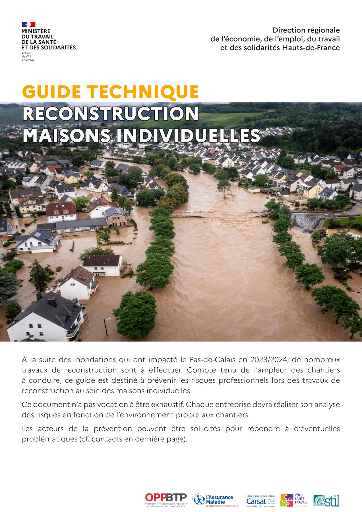 - Un guide technique visant à prévenir les risques professionnels lors des travaux de reconstruction au sein des maisons individuelles. Ce document n’a pas vocation à être exhaustif. Chaque entreprise devra réaliser son analyse des risques en fonction de l’environnement propre aux chantiers, les acteurs de la prévention pouvant être sollicités pour répondre à d’éventuelles problématiques.