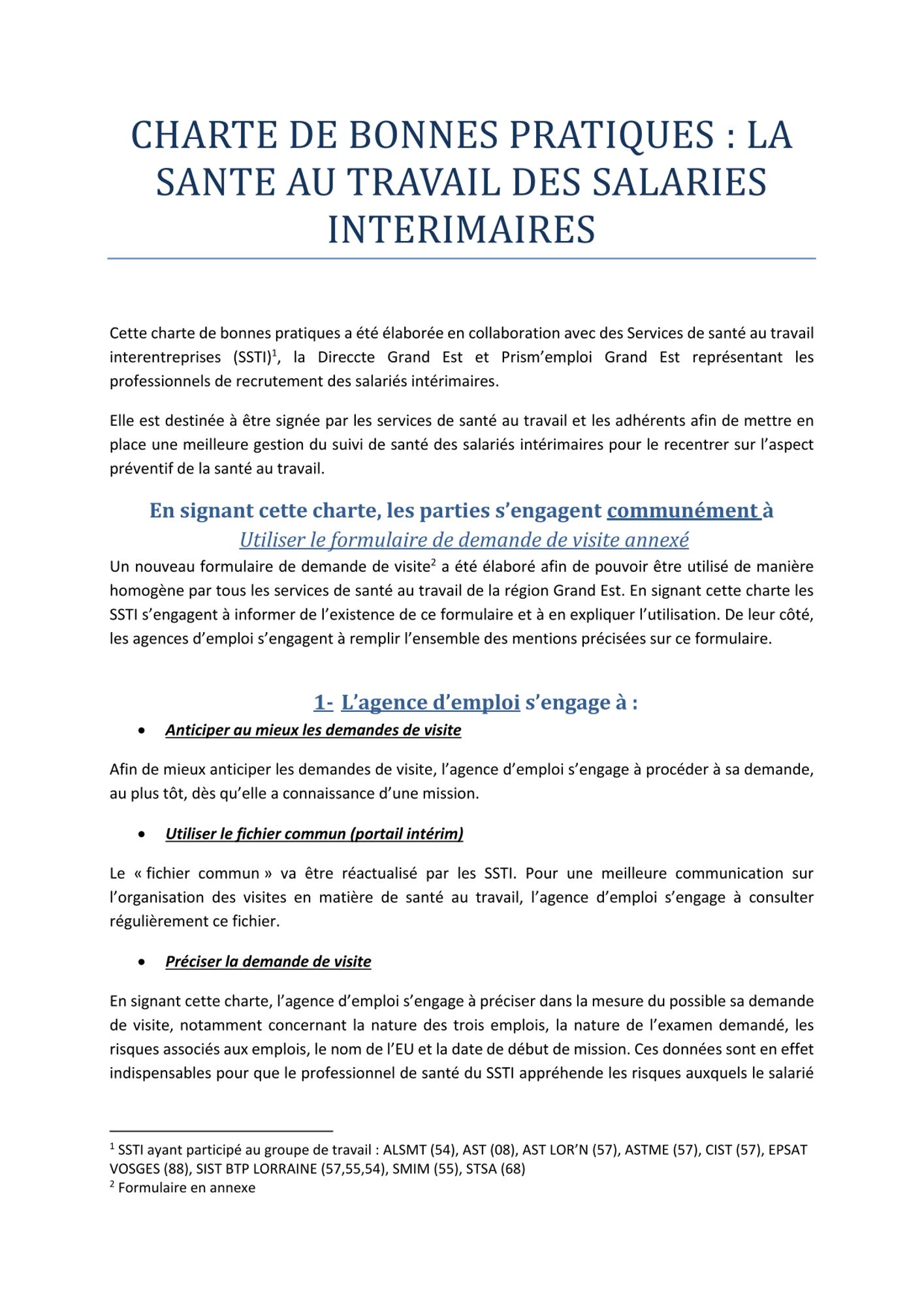 • Réalisation d’une charte de bonnes pratiques entre les SSTI et les ETT